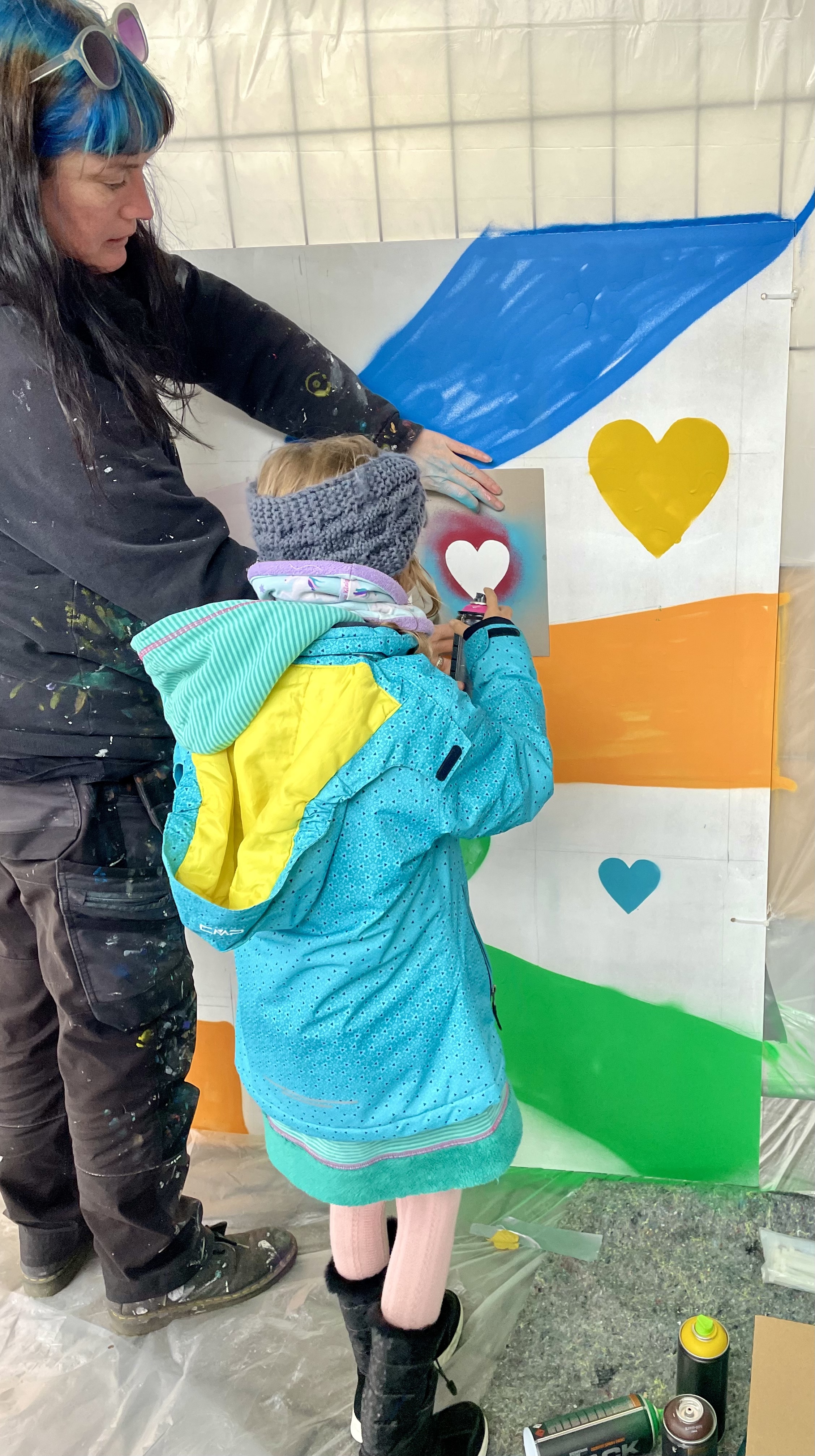 Zum Gänsemarkt war die Künstlerin Candy Joyce zu Gast, die bereits zum Festival Mitten in Europa mit zwei Künstlern die ehemalige Turmstation der Stadtwerke in der Aspacher Straße gestaltete. In diesem Jahr fertigte sie zusammen mit Kindern der vierten Klassen der Schillerschule zwei große Wandgemälde. Das eine zeigt das Logo der Schillerschule, das andere passend zum Gänsemarkt eine farbenfrohe Gans. Die zwei Wandgemälde werden in der Schillerschule aufgehängt. Auch die Besucher des Gänsemarkts konnten aktiv werden und das Bild zum Gänsemarkt gestalten.